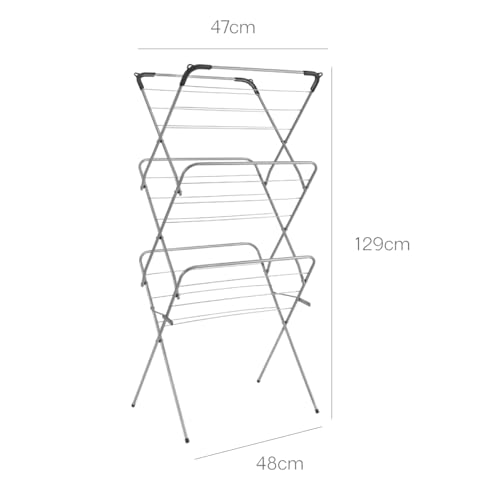 • COMPACT & FOLDABLE DESIGN – Tailored for smaller spaces, this clothes horse features a slim 3-tier concertina folding design. Measuring 48 x 47 x 129 cm, it's a space-efficient laundry drying rack that collapses to 48 x 69 x 5.5 cm, epitomising foldable clothes drying rack convenience