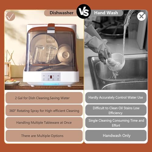 - 【EASY TO USE】 : Our countertop dishwashers feature intuitive controls and indicator lights, making them incredibly easy to use. Say goodbye to complicated settings and enjoy a stress-free dishwashing experience.