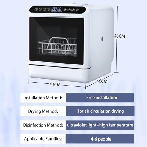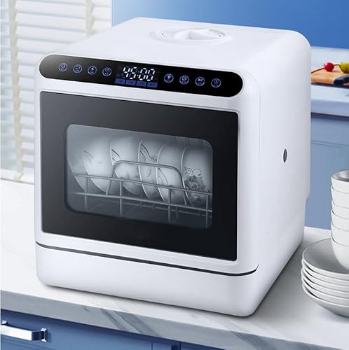 - 【SIMPLE AND WATER-SAVING】: The desktop installation-free dishwasher has multiple functions including cleaning, disinfection and drying. Its touch panel helps you start with one button, the 4 washing programs are easy to use, and it consumes 5 liters of water per dishwashing, saving more water than traditional hand washing.