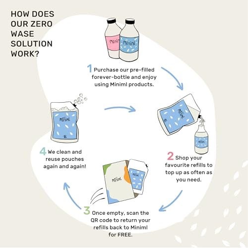 - ✅ ZERO WASTE: Our eco friendly and fully sustainable solutions go far beyond your purchase. Refill our 500ml forever bottles with this 1L refill pouch. Simply send us back your empty pouches for professional cleaning so that they can be reused again and again. We even have refill partners across the UK to help make the world a cleaner, greener place to live