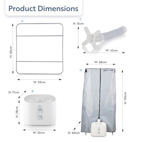 - Compact: Measuring just 33 x 28 x 17cm the heat pod unit is small and compact, making it easy to store between uses. Weighing just 4.6kg this product makes the perfect addition to your clothes horse.