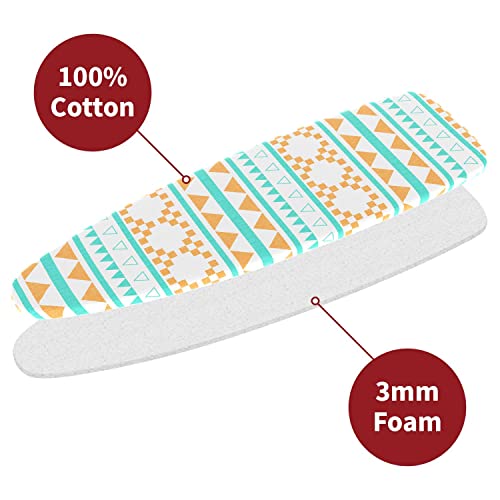 • TIME-SAVING IRONING: The cotton foam padding provides optimal resistance, allowing for smooth ironing without slipping, while the heat-reflective feature promotes quicker ironing, conserving both time and energy. The integrated thick underlay eliminates the need for a separate felt underlining.