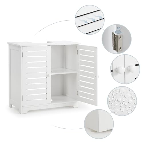 Mondeer Under Sink Cabinet, Wooden Freestanding Bathroom Storage with 2 Louvered Doors and 2 Shelves, 60 x 60 x 30cm, White