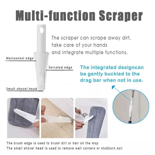 - 【Upgrade Floor Mop, More Efficient Cleaning】Different from the traditional mops, the spray mop is with high polymer fine nozzle and removable liquid container, flexible design makes cleaning easy and efficient, saves time. Attached with a multi-function scraper, which can scrape hair and dirt from the microfibre pad. The flat edge can be used to remove excess moisture from pad or stubborn dirt on the floor