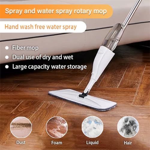 - 【Flexible 360° rotating mop head】With a flexible 360° rotating head, the spray floor mop can be adjusted to any desired angle, allowing you to clean deep, narrow and hard-to-reach corners of your home quickly and easily