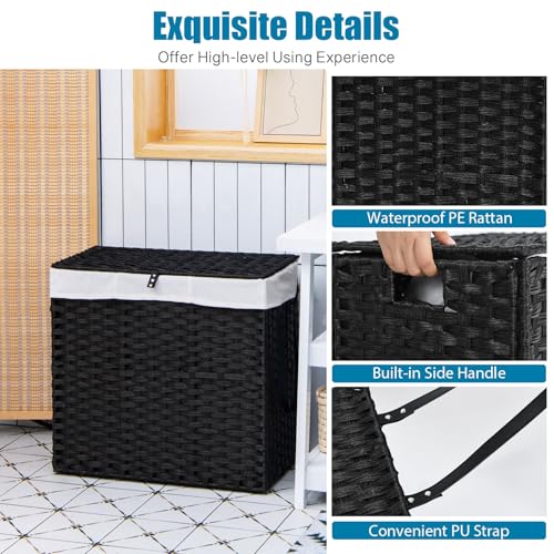 - Large Capacity: This 125L laundry basket comes with 2 detachable 3-compartment inner lining pockets to distinguish between dark and light colored clothes. Additionally, for your convenience, these 2 bags can be machine washed.