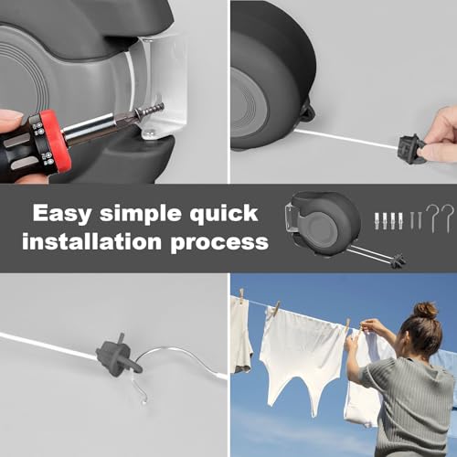 - Easy Of Installationļ¼Our retractable washing line indoor is very easy to set up on most walls in just a few minutes, Simply use the quick-lock cleat at the bottom and then adjust the length of the retractable lines