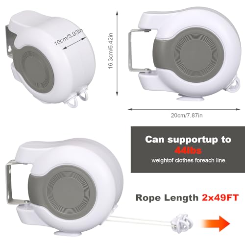 - High Quality Clothes Lineļ¼Our indoor clothes line are made with sturdy plastic and strong PVC rope white retracting cable. The 44Lbs capacity of this wall-mounted clothes lines makes it perfect for heavy washing loads