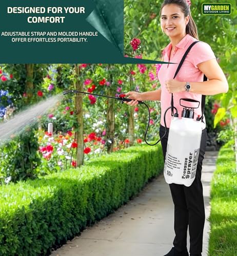 My Garden 10 Litre Sprayer Pump – Weed Killer Pressure Sprayer Pump Action – High Pressure Long Reach Sprayers – Ideal For Spraying Water Fertiliser Herbicides Pesticides Preservative & Detergent