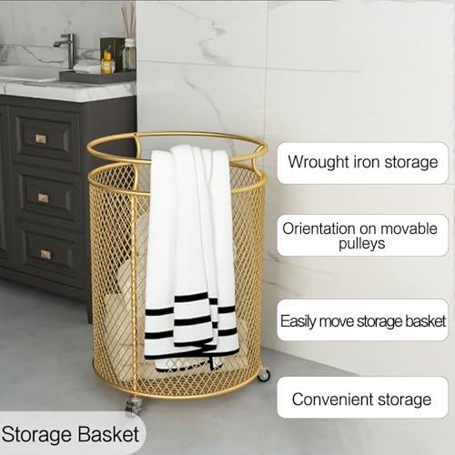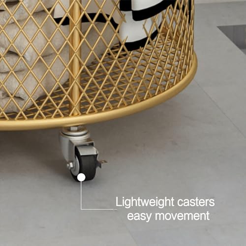 MZBDYYF Rolling Laundry Basket Cart, Metal Wire Hamper with Wheels, Versatile Storage for Laundry and Yoga Mats, Gold Finish