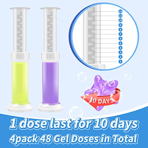 • LONG-LASTING FRAGRANCE: The package comes with 4 tubes toilet cleaning gel, the 2 purple tubes represent lavender and the 2 yellow tubes represent lemon scent, it can be changed within 10 days, each tube of toilet bowl cleaner gel can push 9 doses. And it is stable enough to stand the flushes by water,ensure the continuous protection and continuous flower and ocean fragrance, so it can use for long time.