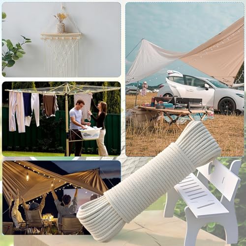 - 【Multipurpose Indoor/Outdoor Line】Beyond laundry, this sturdy cotton rope excels in arts & crafts, garden fencing, camping guy lines, macramé art, and more. Compact yet robust for home, travel, or creative projects.