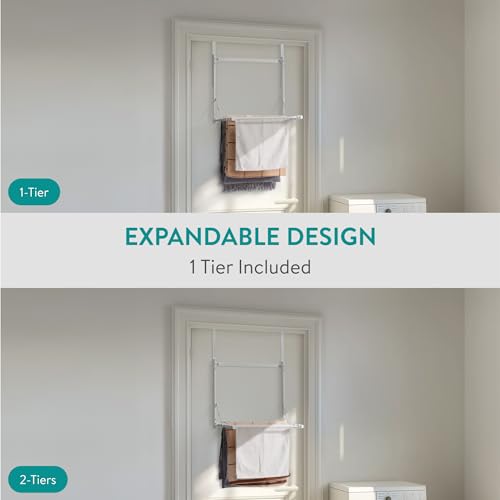 Navaris 1-Tier Over Door Towel Rack – Adjustable Radiator Airer for Laundry – Wall-Mount or Over the Door Towel Holder – Foldable Hanging Clothes Drying Rack for Bathroom