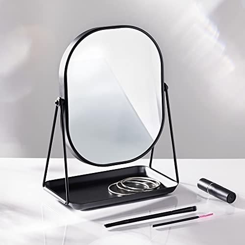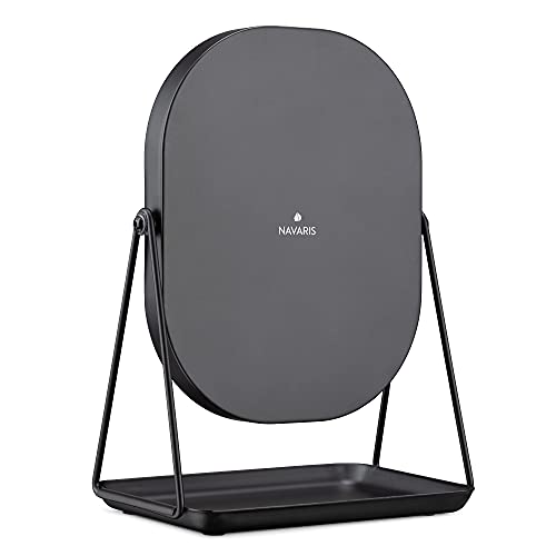 Navaris Free Standing Makeup Mirror – Large Cosmetic Vanity Mirror for Bathroom, Dressing Room, Bedroom Table or Desk with Large Tray Stand – Black