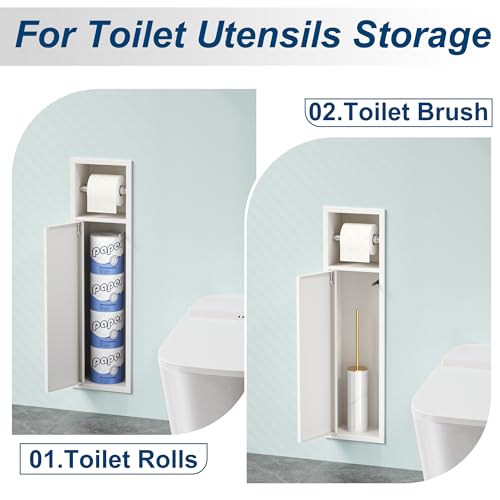 - 【Space-saving and Load Rolls Easily】This recessed toilet paper holder adopts built-in design, saves space of your bathroom and makes it look elegant and tidy, ideal for house remodel and renovation. It offers a secure place to hang your toilet roll for easy access, prevents toilet paper roll from falling off. Easy to change new toilet rolls.