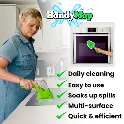 - HandyMop for Surfaces: Designed for cleaning countertops, cupboard doors, and appliances, this hand mop effortlessly wipes spills and stains. This small mop spray has a built-in spray for fast cleaning without bulky equipment or disposable towels.
