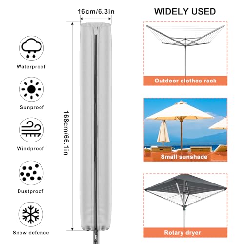 Newthinking Rotary Washing Line Cover, 420D Heavy Duty Waterproof Rotary Dryer Cover with Zip for Rotary Clothes Line, 168x16x16cm, Silver