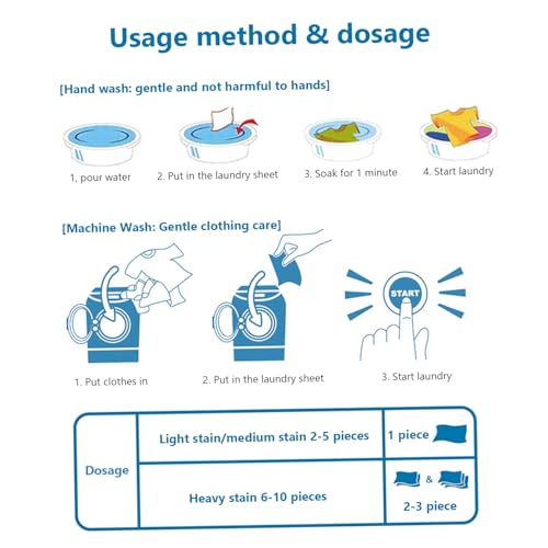 - Versatile Use: Laundry detergent sheet is suitable for clothes made of cotton, linen, synthetic fibers, blends, and other materials. The laundry sheet is suitable for all machine washing and hand washing.