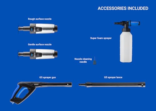 - ACCESSORIES: It includes G5 spray gun, Gentle adjustable jet nozzle and Rough rotary jet nozzle and nozzle unclog needle