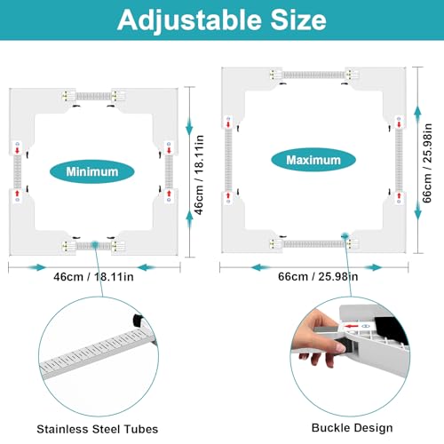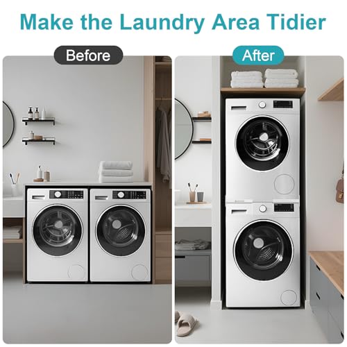 - Premium Material: NIUXX washing machine intermediate frame kit is made of durable and strong plastic and stainless steel. Universal intermediate kit ensures stability and safety even during the most intense spin cycles, firmly keeping stacked appliances together. Ideal giving choices for hoewarming, Christmas, and New Year