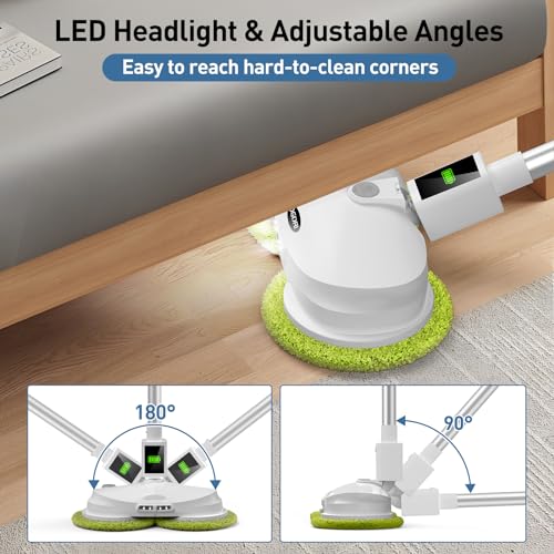 • 🔥CORDLESS ELECTRIC SPIN MOP: ✔Built-in 400ml big water tank ✔One-click water spray ✔LED Headlight ✔180° Adjustable Angle ✔6 Reusable & Washable Mop Pads✔2 x 2250mAh Detachable Lithium Batteries ✔Dual Powerful Spin Motors ✔Less than 60dB noise ✔ Extendable rod for free length adjusting.