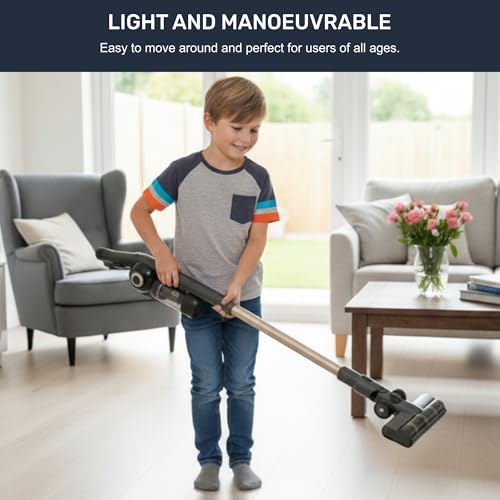 ULTRA-LIGHTWEIGHT & EASY TO MANEUVER – Weighing just 5.3kg (with floor tool), the Olsen & Smith Stick Vacuum is designed for effortless handling. Its ergonomic design makes it easy to clean floors, ceilings, shelves and tight spaces along walls and furniture. Its slim, lightweight body makes it easy to carry up stairs, reach high corners, and glide around edges without strain; perfect for users of all ages.