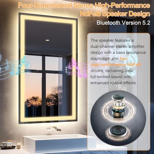 Olyvren LED Bathroom Mirror with Lights,Bluetooth Dual Speaker,Anti-Fog,3 Color Temperature,Dimmable Brightness,Memory Function,Waterproof,Wall Mount Design,Tempered Glass (3 Light Modes, 100Lx70W CM)