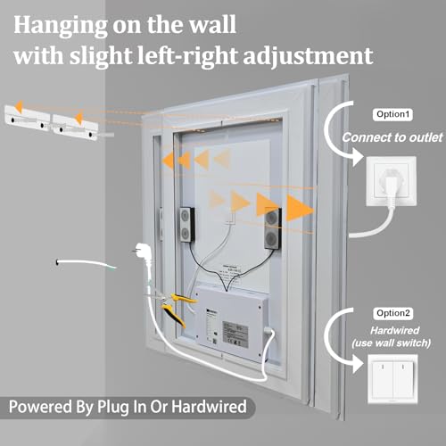 - 【Smart Memory Anti-fog Mirror】This smart LED bathroom mirror is equipped with a memory function that automatically restores the brightness, colour temperature and anti-fog parameters set last time. The built-in fast heating anti-fog system can quickly activate the safety heating module, the heat will be spread outward from the centre area of the mirror.