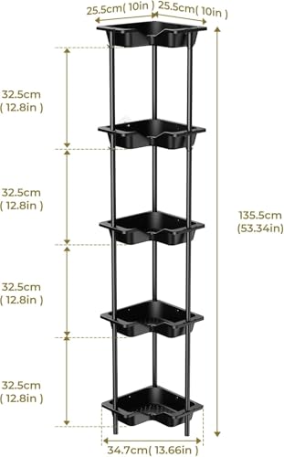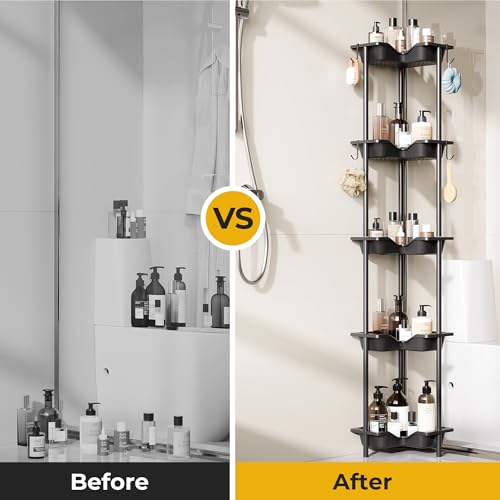 OriwarE Rustproof Floor Standing Corner Shower Caddy Organizer, Plastic Metal Splicing Floor Corner Shelf Rack Stands for Bathroom (Black, 5 Tier)