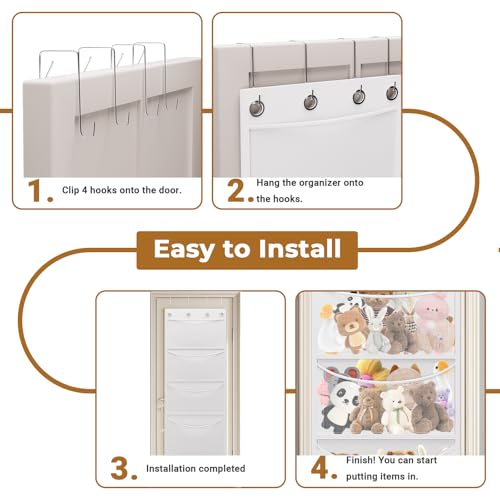 • Multi-Purpose – The door hanging storage can not only store plush toys, but also for organizing baby essentials, such as clothes, socks, shoes, towels, and other supplies. Its simple and adorable design makes it perfect for a child's room.