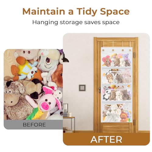 • Large Capacity Teddy Storage – The soft toy storage measuring 23.6" x 65" (60 x 165cm), features 4 large mesh pockets. The mesh design offering ample space and allows easy to find the toys inside, saving you a lot of time.