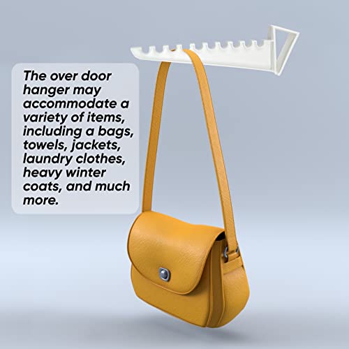 - (PREMIUM QUALITY MATERIAL) – The door hooks for coat hangers are constructed of high-quality plastic that is resistant to distortion and not easily broken. The over door hanger may accommodate a variety of items, including a bag hanger, towel hanger, jacket hanger, kitchen storage, bathroom storage, bedroom storage, tool storage, clothes hanger, laundry hanger, wet clothing, kitchen towel storage, heavy winter coats, sports gear, and more.