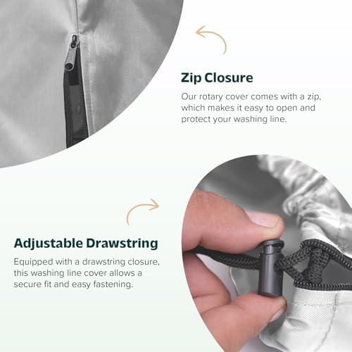 - ZIP CLOSURE: The washing line cover with zip keeps the airer intact and makes fastening easier: Flatro waterproof washing line cover is very easy to fit and remove as it comes with a drawstring