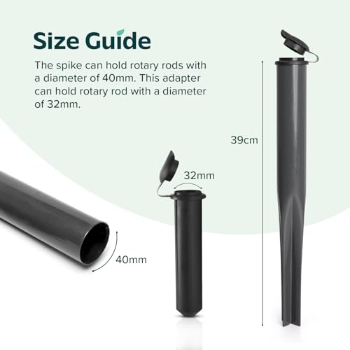 • FOR ALL STANDARD POLES: Our Strong and sturdy powder coated Alloy metal rotary washing line spike is a multi-fit spike with height 39cm, perfect to be used with rotary Airer or other standard poles that have 40mm diameter; strong plastic adapter is available to help 32mm and 40mm both rods or poles to set in the spike