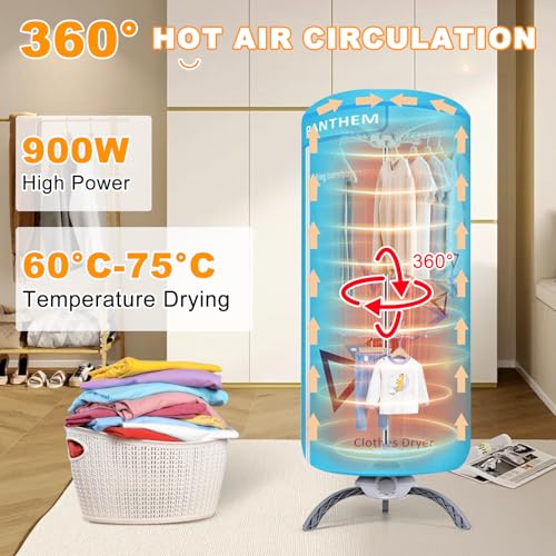 panthem 900W Portable Electric Clothes Dryer – Compact 2-Tier Detachable Heated Rack with Timer, 12KG Capacity, Space Saving Fast Warm Air Drying for Home, Apartment, RV and Travel, Blue