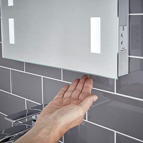 • BUILT-IN SHAVER SOCKET: Our Pebble Grey Lola Illuminated Bathroom Mirror comes with a bathroom mirror with shaver socket, allowing you to conveniently charge your electric shaver or toothbrush. Our bathroom mirror with lights and shaver socket ensures a tidy, organized space while offering the ideal solution for your electric mirror bathroom setup. Enjoy a clutter-free bathroom with this mirror with lights bathroom feature, ideal for all your grooming needs.