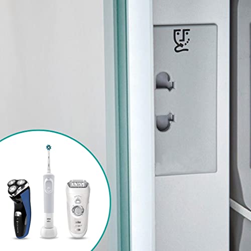 - INTEGRATED SHAVER SOCKET FOR MAXIMUM ORGANIZATION: Easily connect grooming essentials with the Pebble Grey bathroom mirror with shaver socket, featuring a discreetly integrated shaver socket light. Ideal for led bathroom mirror with shaver socket, bathroom mirrors with lights, mirror with toothbrush charger port, bathroom heated mirror, anti fog bathroom mirror, and bathroom light up mirror users who want a seamless, well-organized daily grooming experience.