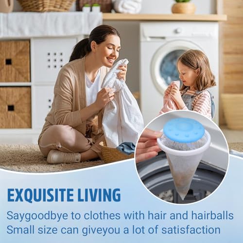 - 🌀 Floating Hair Filter: The washer hair collector features a unique conical mesh design that efficiently collects hair, lint, and other debris from clothing. The hair is pulled into the mesh, keeping your clothes intact and clean.