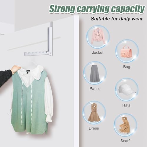 PEUTIER Over The Door Hanger Hook, Foldable Over Door Drying Rack Behind Door Hooks Portable Door Hanging Clothes Organizer for Hanging Clothes Coat Towels Bags Laundry Home