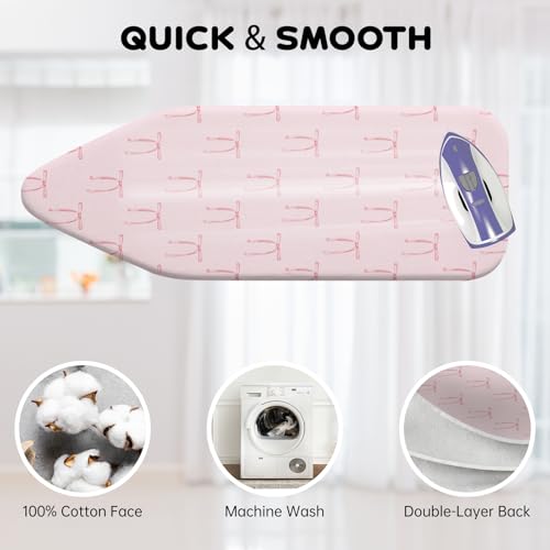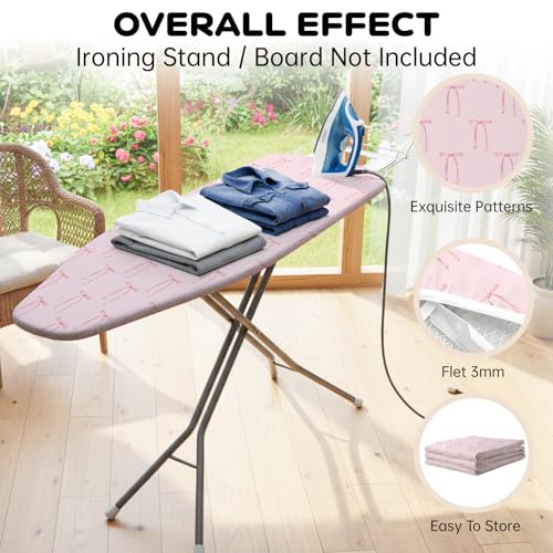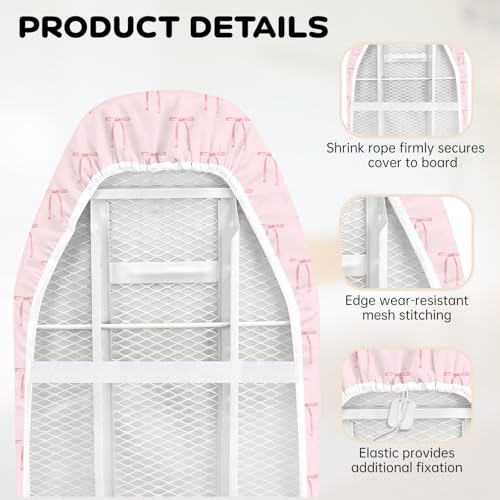 Pink Bow Ironing Board Cover 130 × 40 cm, Thick 3mm Cotton Felt Padding, Drawstring Tightening & Lock, Heat Resistant and Stain Proof, Heavy Duty Padded Covers