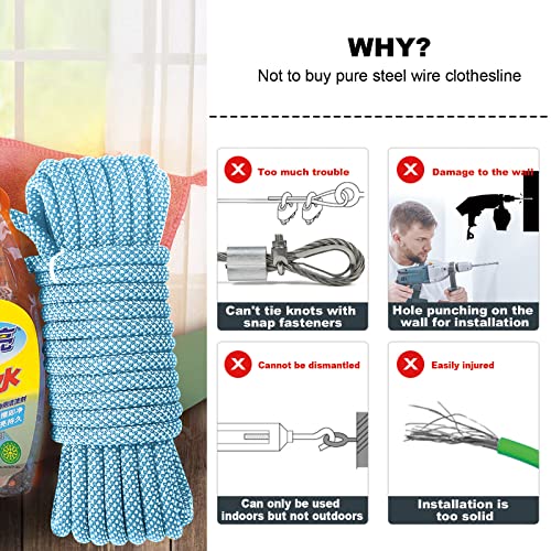 - ✅【High Quality】Polyester washing line rope made of polyester fiber material, which has the characteristics of high load-bearing, good wear resistance, sun resistance and wind resistance, so you can use it with confidence