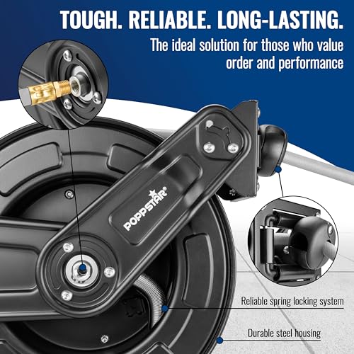 Poppstar Steel Compressed Air Hose Reel (20m+2m, Diameter (9.2x15mm)), Connections 1/4 inch BSPT