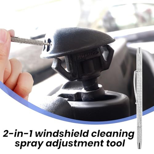 - [Efficient Windscreen Washer Jet Maintenance]: The 2-in-1 windshield washer nozzle adjustment tool is designed to swiftly remove obstructions, dirt, or corrosion from washer jets, preventing streaks or uneven spray patterns on your windscreen. Keep your washer system in peak condition.