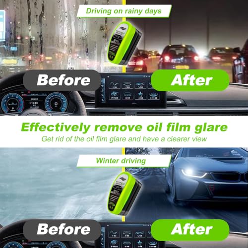 - [Efficient removal of oil film] The newly upgraded automotive oil film cleaning brush is like a deep SPA for glass! It can quickly dissolve old dirt such as asphalt and shellac for oil stains, dirt and stubborn oil film. The 150ml large-capacity new 2.0 green oil film wipe continuously outputs cleaning power, and it is normal to have white sediment. After shaking it well, it will be "revived" immediately, and it will be cleaned with one brush and you will have a clear vision.