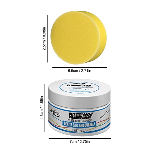 White Shoe Cleaning Cream – 100g White Trainer Cleaner – Shoe Whitener For Trainers – Shoes Whitening Cream With Sponge – Household White Shoe Cleaner Tools For Canvas Sports Shoes