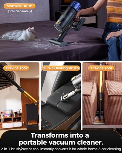 • 55kPa 580W Super Strong Suction:With its 580W brushless motor, this cordless vacuum delivers strong 55kPa suction to easily clean large debris, stubborn stains, pet hair, and hidden dust in corners and hard-to-reach areas. A perfect balance of power and convenience in a stick vacuum design.