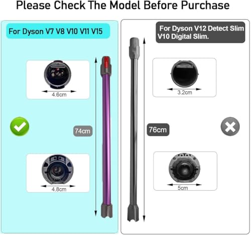 - 【Widely Compatible Models】-The extension tube compatible for Dyson V7 V8 V10 V11 V15 Outsize / Detect / Cyclone / Absolute / Fluffy / Motorhead / Trigger / Animal series cordless vacuum cleaner.