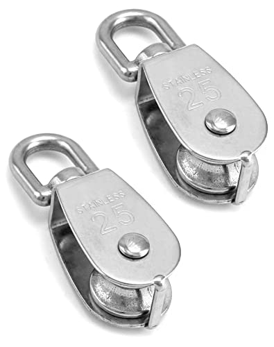 QWORK® 2PCS M25 Singe Pulley Block 304 Stainless Steel Pulley Wheel Roller for Wire Diameter 11mm 360° Swivel Loading 150kg/330lbs for Indoor Outdoor Application