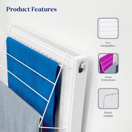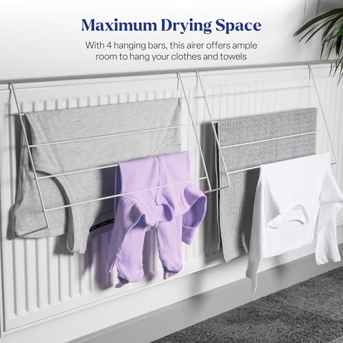 - Space-Saving Solution: Engineered to easily hang on any radiator, this pack of 2 radiator clothes airers is perfect for homes with restricted floor space; Dry your laundry without cluttering your rooms, and its anti-slip foot cover ensures it remains securely in place.