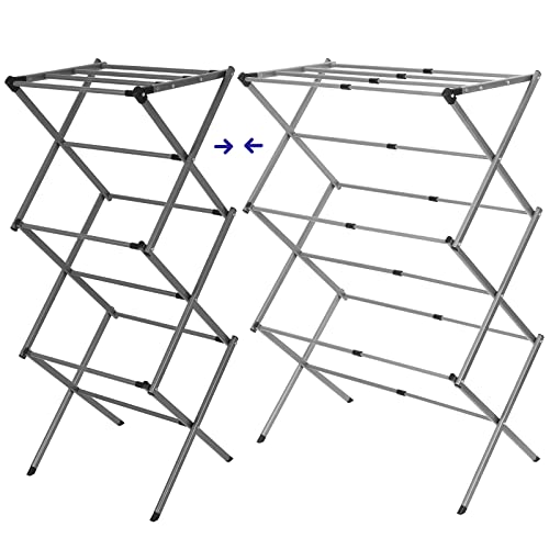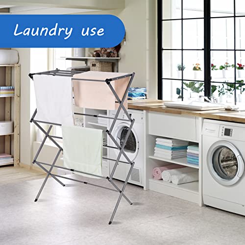 - [🔧 𝐅𝐎𝐋𝐃𝐀𝐁𝐈𝐋𝐈𝐓𝐘] Accordion-style fold lets these clothes drying racks collapse quickly for storage, making it compact and easy to carry between rooms, perfect as a cloth dryer for all type of clothes.
